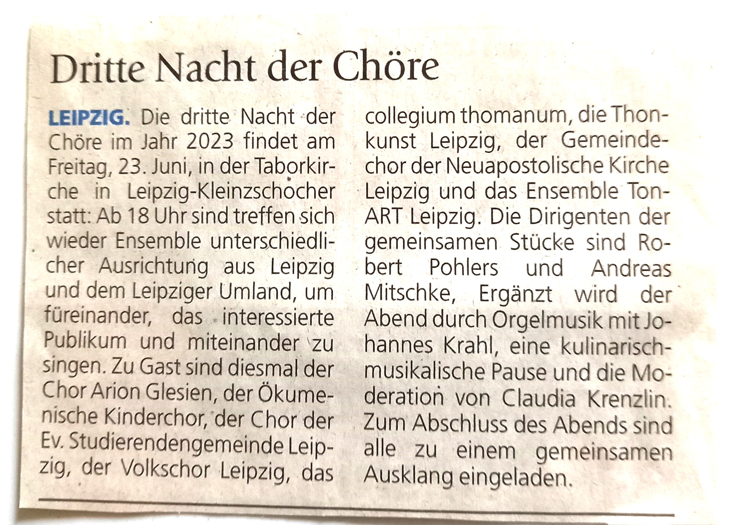 Einladung zum Gemeinschaftskonzert des Leipziger Chorverbandes