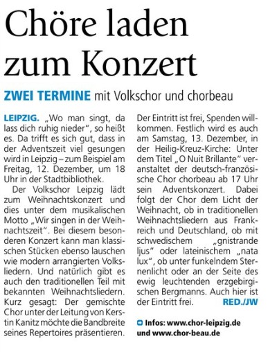 Großes Adventskonzert des Chores der VHS Leipzig am 12.12.2014